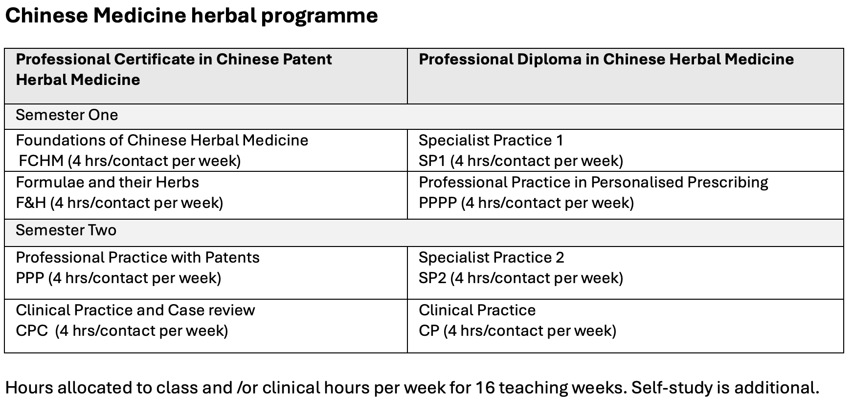 4. Professional Diploma in Chinese Herbal Medicine