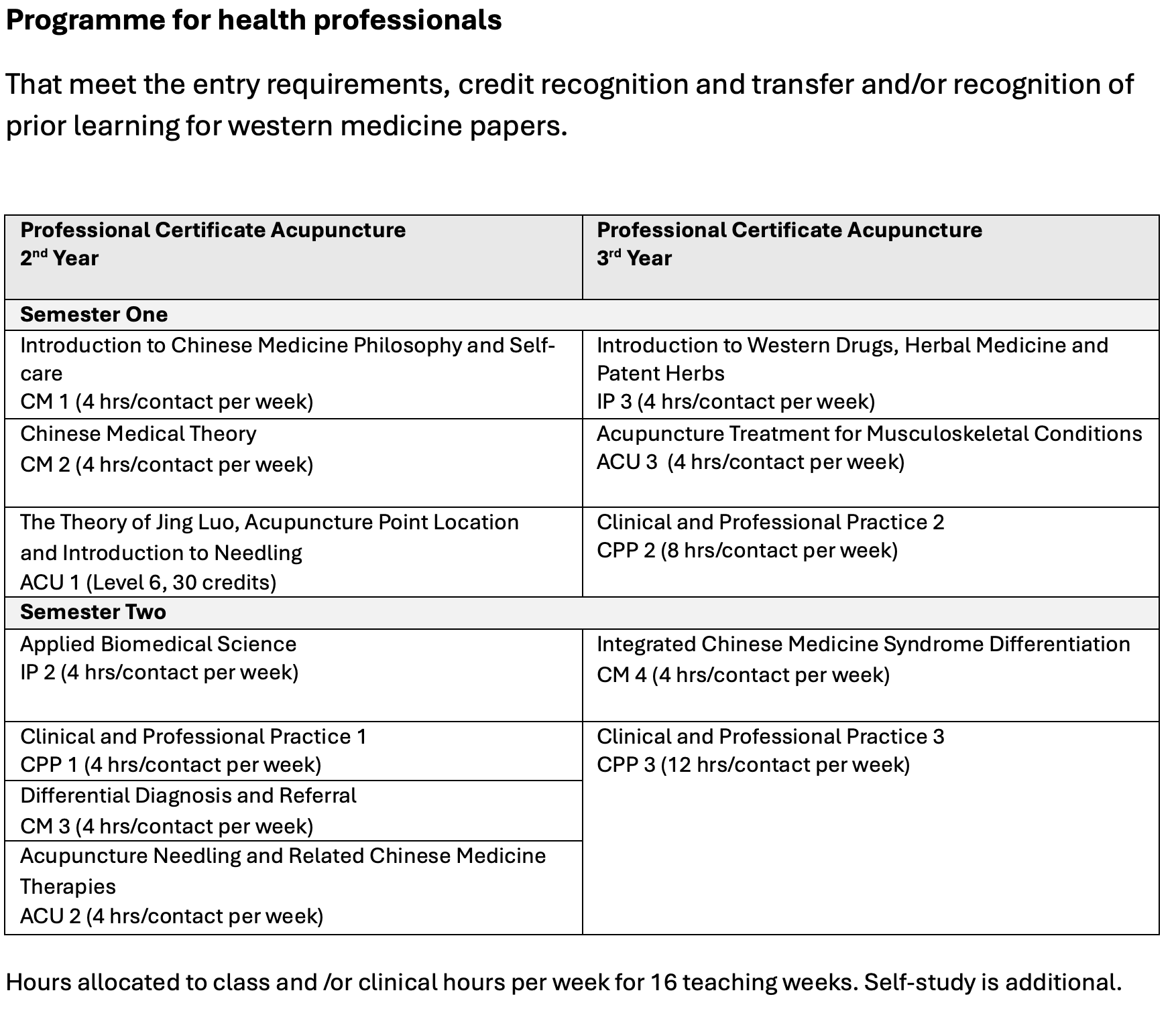 1. Professional Certificate in Acupuncture Health Professional stream with credit for prior learning on 1st year courses